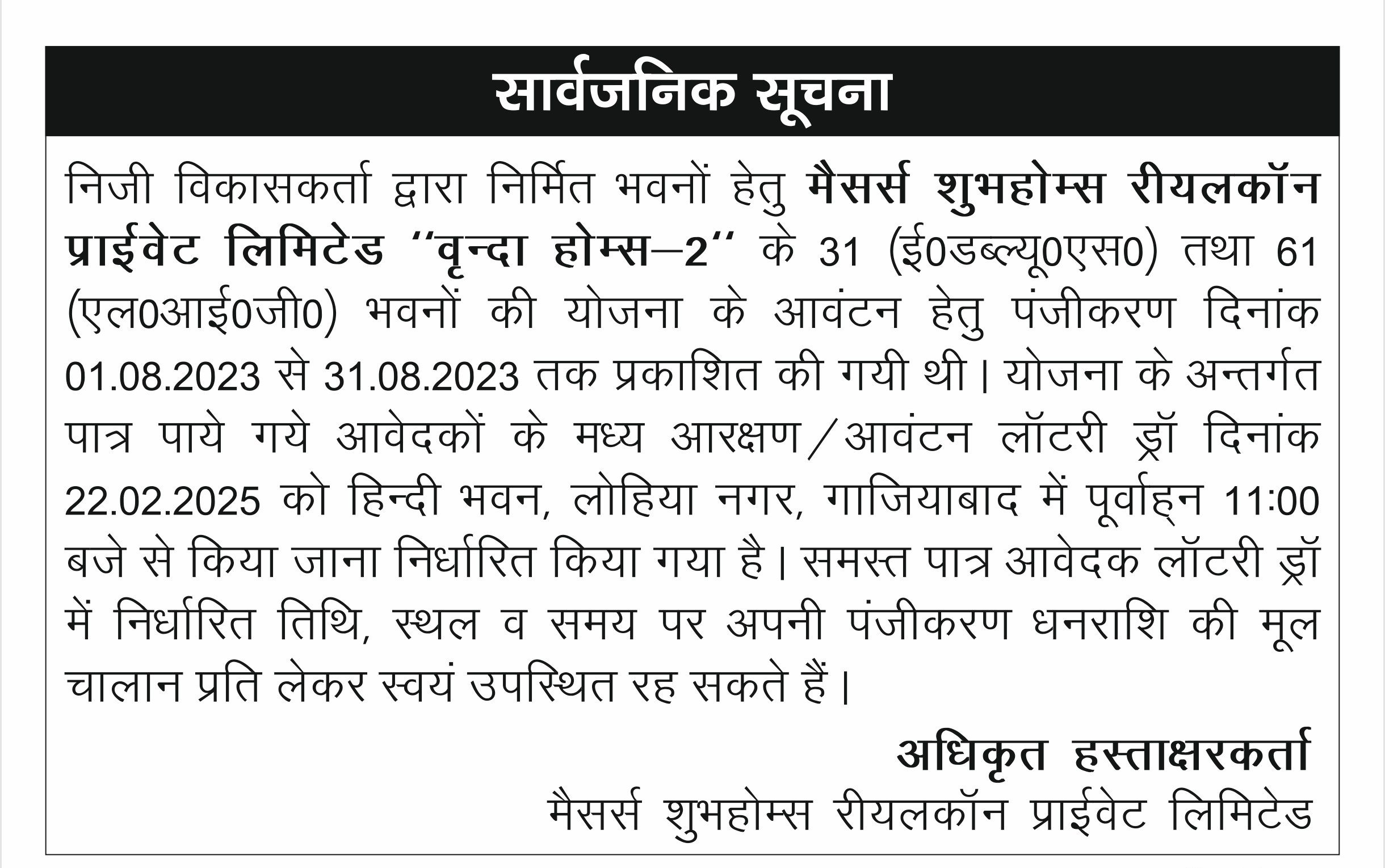 VRINDA HOMES 2 ELIGIBLE CANDIDATES